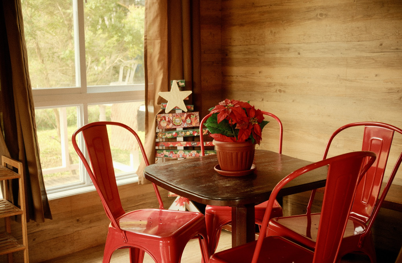 Step outside and you’ll find a serene swimming pool surrounded by a picturesque garden—ideal for morning coffee, afternoon swims, or quiet moments at sunset. The Red Cabin is also pet-friendly, so your furry companions can enjoy the open space and fresh air with you. Whether you’re planning a weekend escape or a special celebration, this cabin is a beautiful setting for rest, connection, and memorable stays.